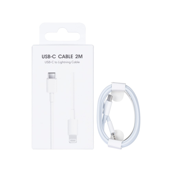 USB‑C to Lightning cable, 200 cm, black. Long‑length cable for charging and data sync with Lightning devices; reinforced connectors and materials for frequent use; third‑party compatible with Apple devices.