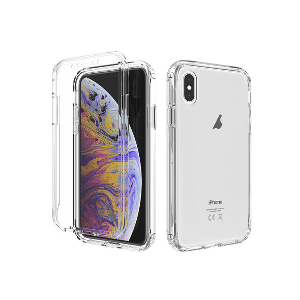 Transparent TPU protective case for iPhone X / iPhone XS. Slim, flexible construction that absorbs shocks, provides a non‑slip grip, resists everyday abrasions and keeps all port and camera access unobstructed while preserving the phone’s original look.