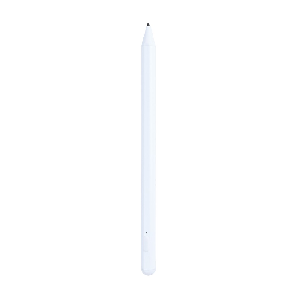 2nd generation stylus in white compatible with Apple iPads; magnetic attachment for pairing and charging.