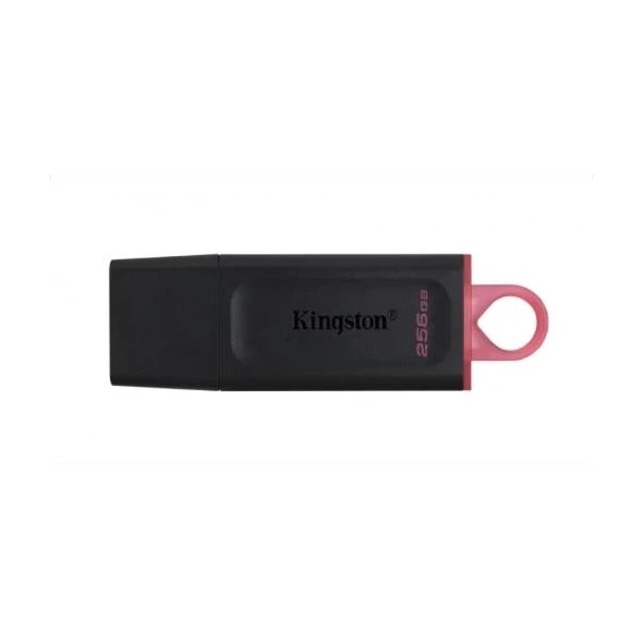 Kingston 256GB DataTraveler Exodia USB 3.2 Gen1 flash drive in black/pink with protective cap and fast transfers.