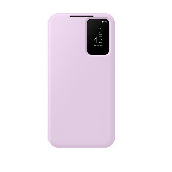 S‑View wallet case in lilac purple for Samsung Galaxy S23 Plus (SM S916B). Slim protective folio with interactive S‑View cover, multiple card pockets, reinforced edges and precise openings to preserve device functionality.