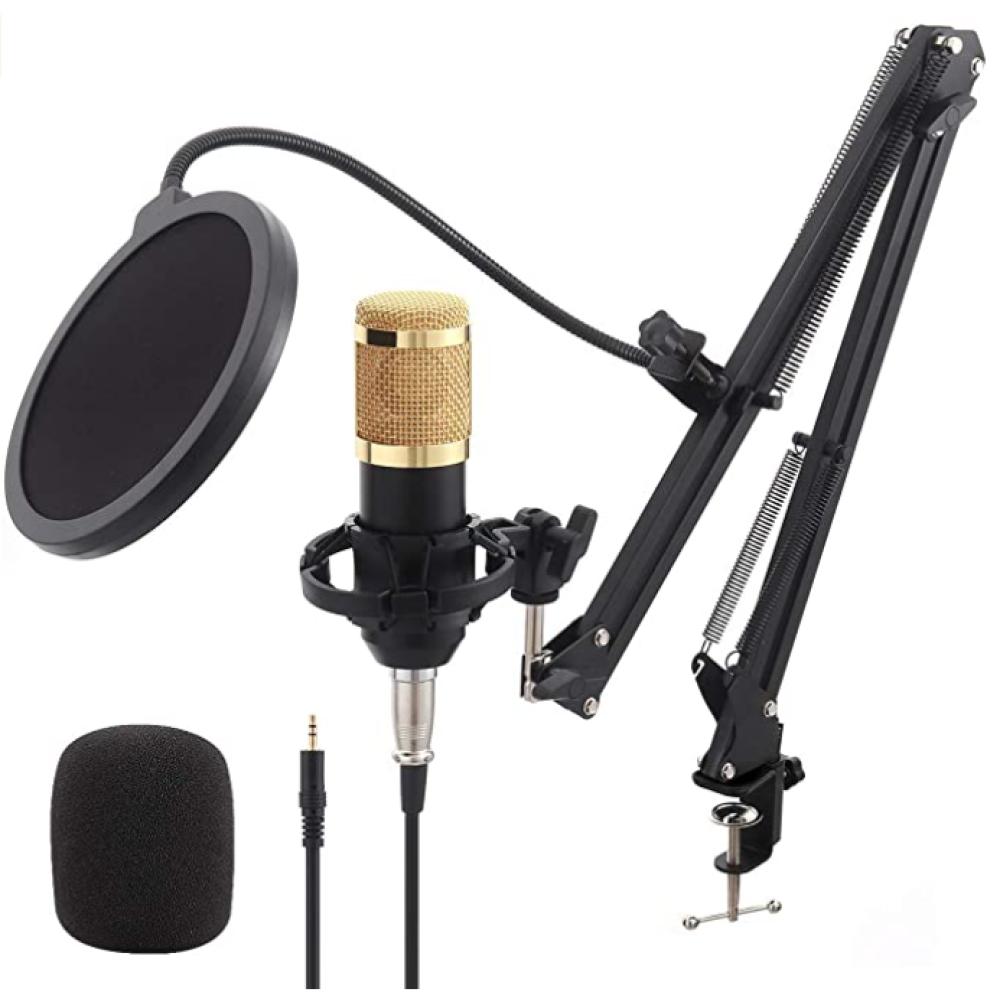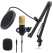 Live broadcast microphone kit with integrated ring light and adjustable stand in black. Provides adjustable brightness ring light, flexible stand positioning, durable build for frequent use and compact footprint for home or studio streaming.