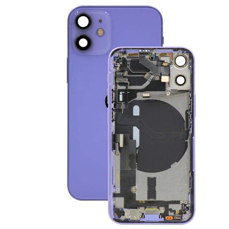 Complete rear housing with all small parts, excludes battery and back camera, Purple; compatible with iPhone 12 Mini (A2399/A2176/A2398/A2400).