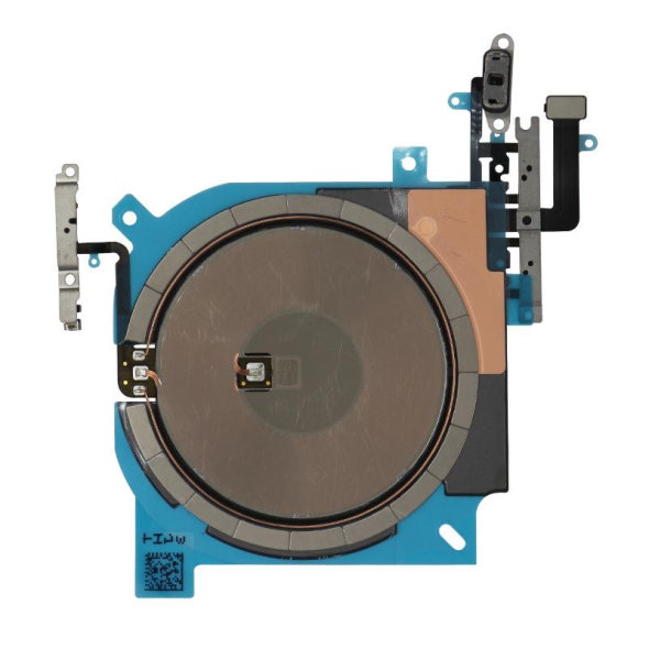 Combined wireless charging flex with power and volume flex; pulled condition; compatible with iPhone 12 Mini (A2176/A2398/A2400/A2399).