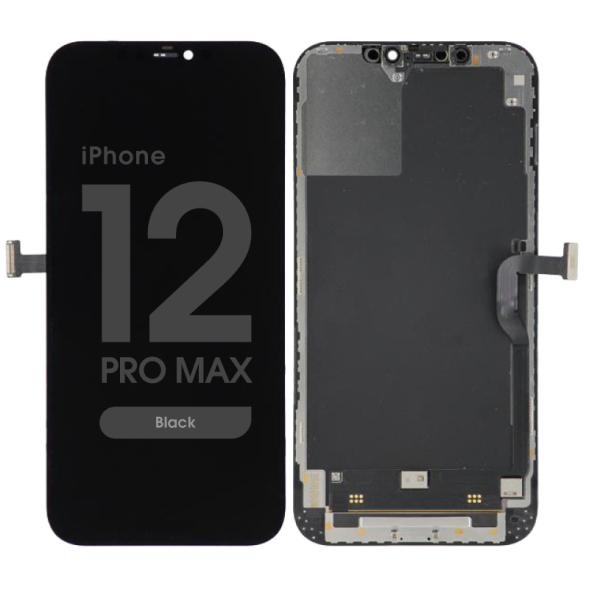 Pulled Super Retina XDR OLED display assembly, 1284×2778, includes frame; restores OLED display and touch. Compatibility: iPhone 12 Pro Max (A2342/A2410/A2411/A2412).