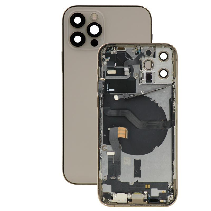 Complete rear housing with all small parts, excludes battery and back camera, Gold; compatible with iPhone 12 Pro (A2407/A2341/A2406/A2408).