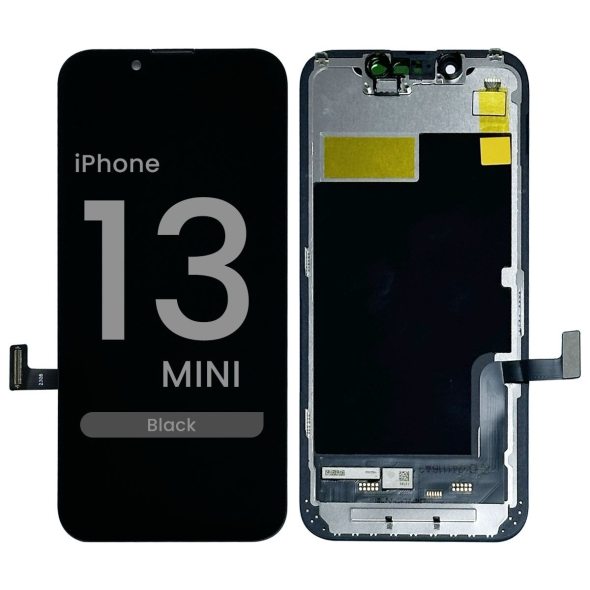In-Cell Super Retina XDR OLED display assembly, black bezel, includes frame; integrated touch sensor for slim assembly. Compatibility: iPhone 13 Mini (A2481/A2626/A2629/A2630/A2628).