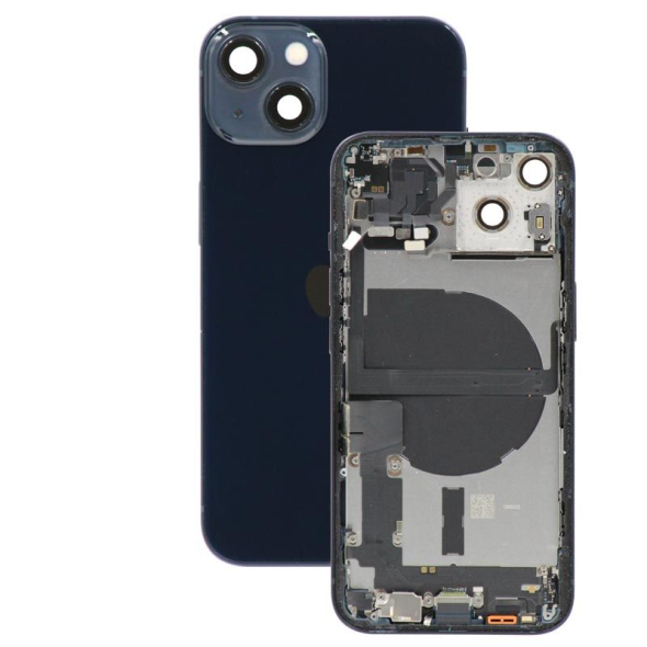 Complete rear housing with all small parts, excludes battery and back camera, Midnight (Black); compatible with iPhone 13 (A2633/A2482/A2631/A2634/A2635).