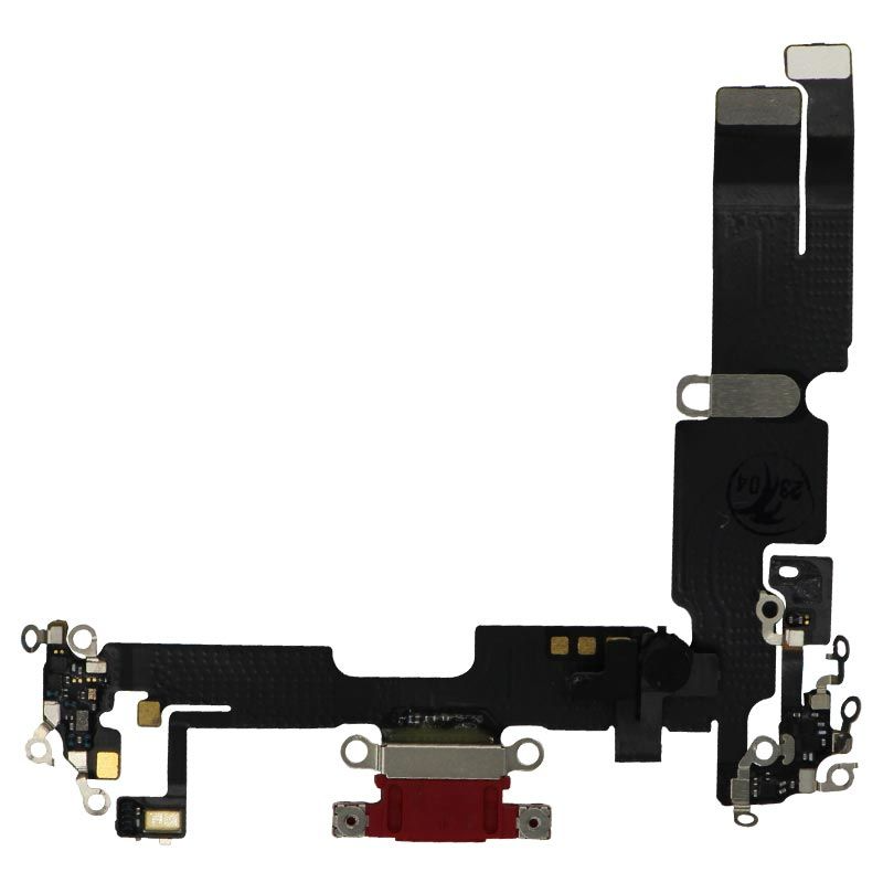 Charging port in PRODUCT(RED); pulled condition; compatible with iPhone 14 Plus (A2632/A2885/A2886/A2887/A2888).