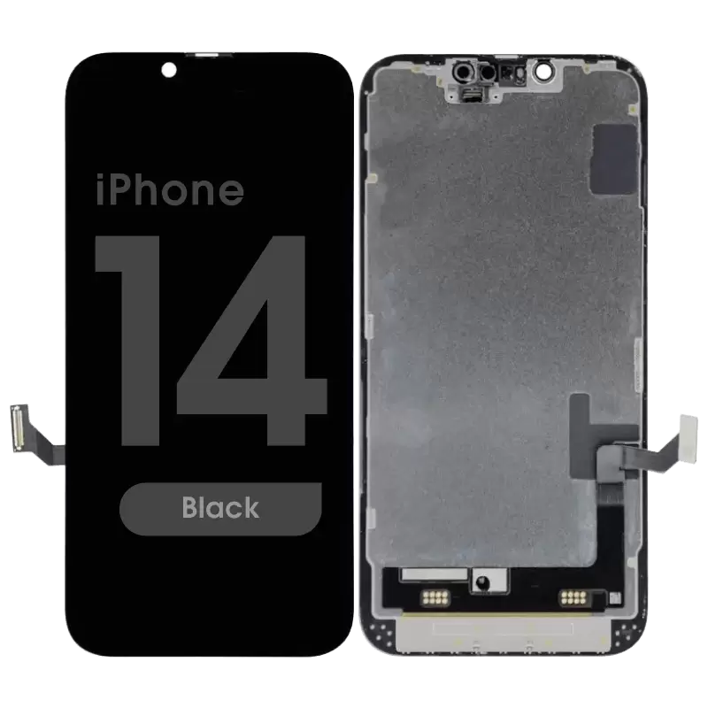 Soft OLED display and Touchscreen assembly (Soft OLED), 60Hz, 6.1 inches, includes frame; Alfa Diagnostic recommended before installing original sensor flex. Compatibility: iPhone 14.