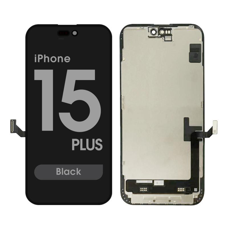 Soft OLED display and Touchscreen assembly, 60Hz, 6.7 inches, includes frame; flexible OLED option. Compatibility: iPhone 15 Plus (A3094/A2847/A3093/A3096).