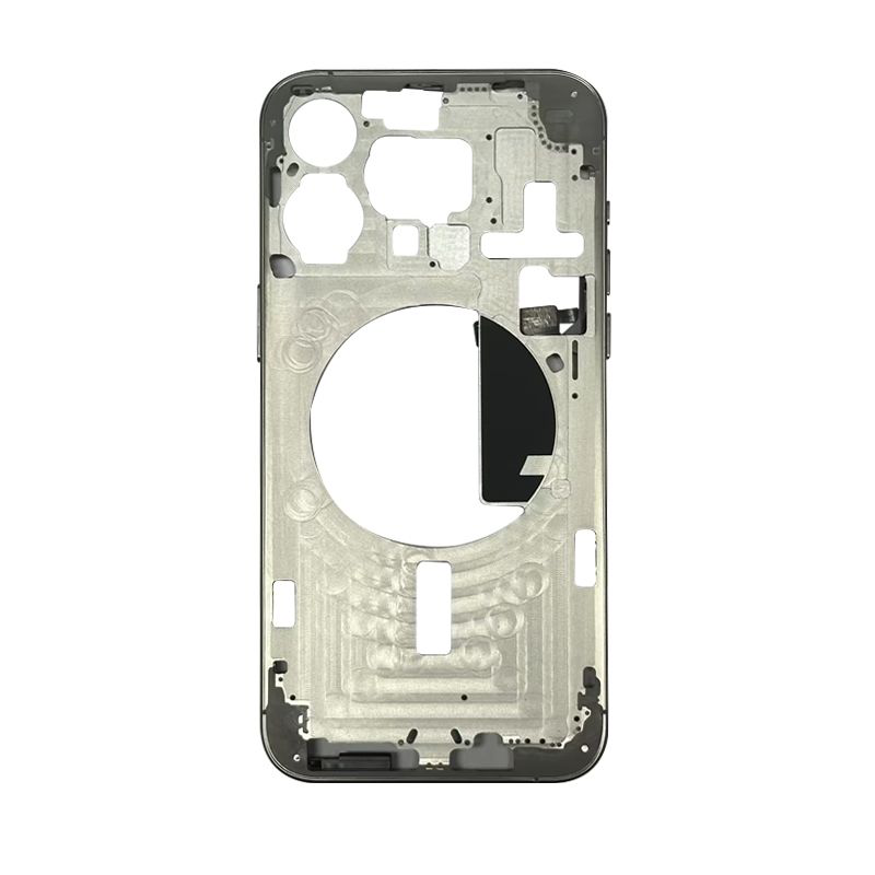 Replacement middle frame (housing and frame), Natural Titanium finish; compatible with iPhone 15 Pro Max (A2849/A3105/A3106/A3108).