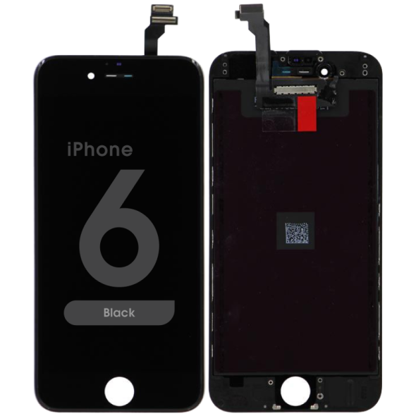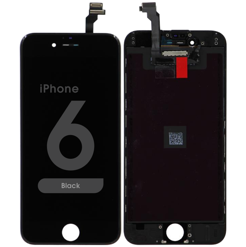 Refurbished Compatible replacement assembly with metal plate and frame for iPhone 6, black bezel; restored and tested.