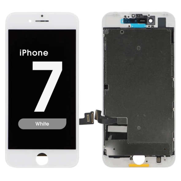 Pulled full Compatible display and Touchscreen assembly with frame, white bezel; restores touch and display. Compatibility: iPhone 7 (A1660/A1779/A1780/A1778).