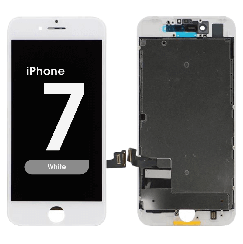 Refurbished Retina IPS LCD display assembly for Apple iPhone 7, white bezel, includes frame; restored and tested. Compatibility: iPhone 7 (A1660/A1779/A1780/A1778).