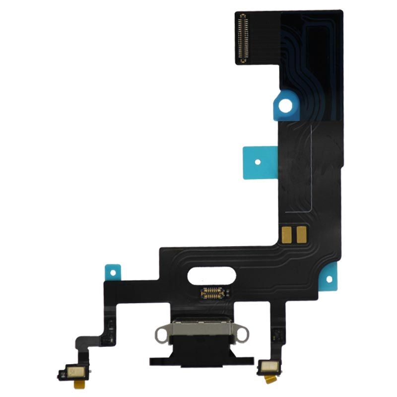 Charging port flex cable, Black finish; pulled condition; compatible with iPhone XR (A1984/A2105/A2106/A2108).