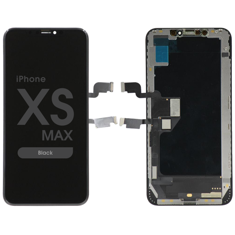 Soft OLED display assembly, includes frame; flexible panel option with high color performance. Compatibility: iPhone XS Max (A1921/A2101/A2102/A2104/A2103/A2217).
