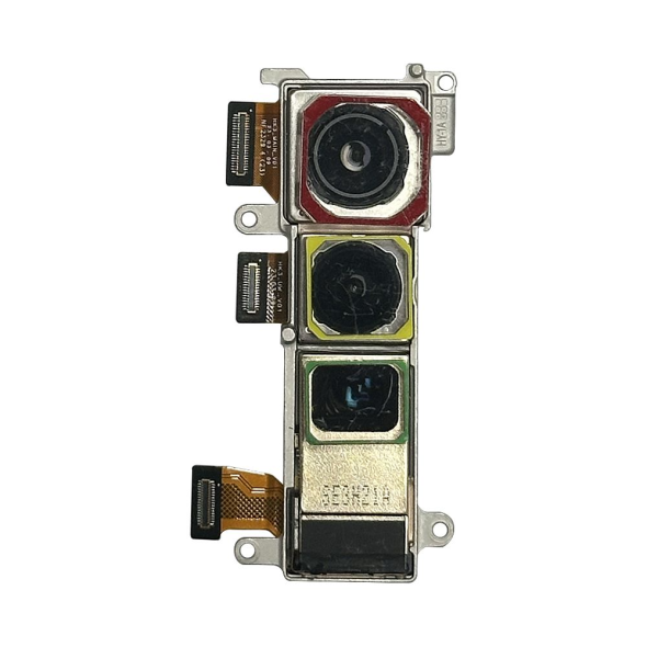 Complete rear camera module: wide, telephoto, and ultrawide lenses for versatile photography.