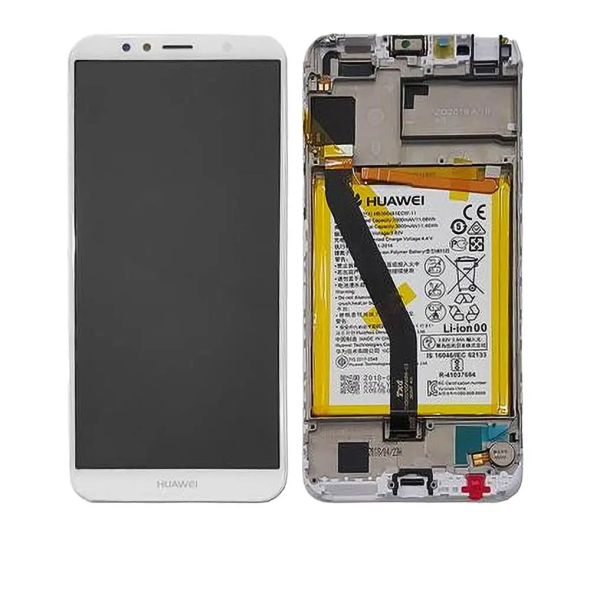 Service Pack screen with battery; white variant; fits Huawei Y6 2018 and Honor 7A.