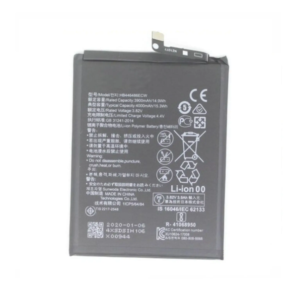 3900 mAh Li-ion battery with 15 W output; compatible with Huawei and Honor models.