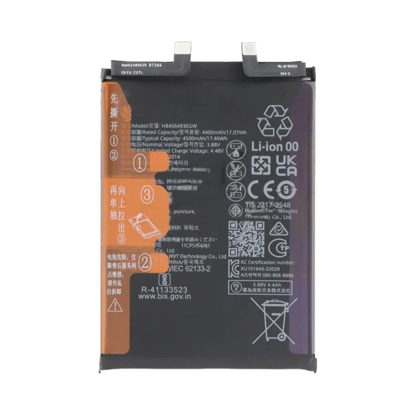 Li-Po battery with 4000 mAh capacity and 66 W fast charging; fits Nova 9 SE.