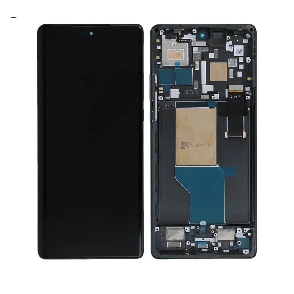 Service-pack complete display with frame in Grey for Edge 30 Ultra; pre-assembled for direct replacement and consistent image and touch quality.
