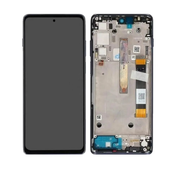 Service-pack full display and frame for Moto G200 5G in Glacier Blue; assembled to restore factory fit, color calibration and touchscreen reliability.