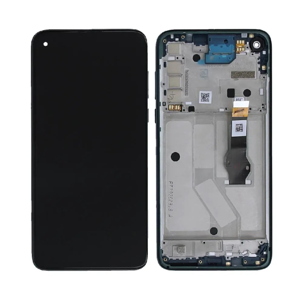 Service-pack complete display and frame for Moto G8 Power Lite in Dark Blue; pre-assembled module to simplify replacement and restore correct alignment and touch.