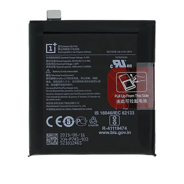 Service-pack replacement battery for OnePlus 7T Pro HD1911; pre-tested cell rated 4085mAh for direct swap.
