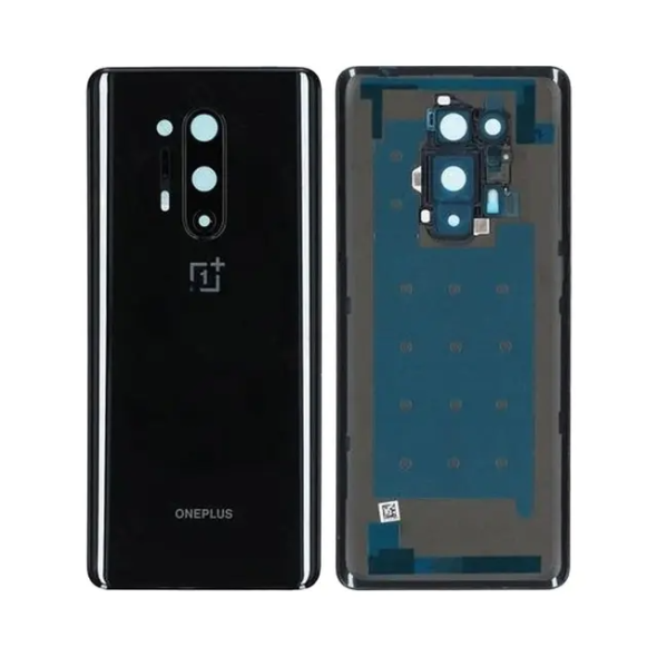 Compatible rear back cover including camera cover for OnePlus 8 Pro IN2020 in Onyx Black; replacement housing matching original finish.