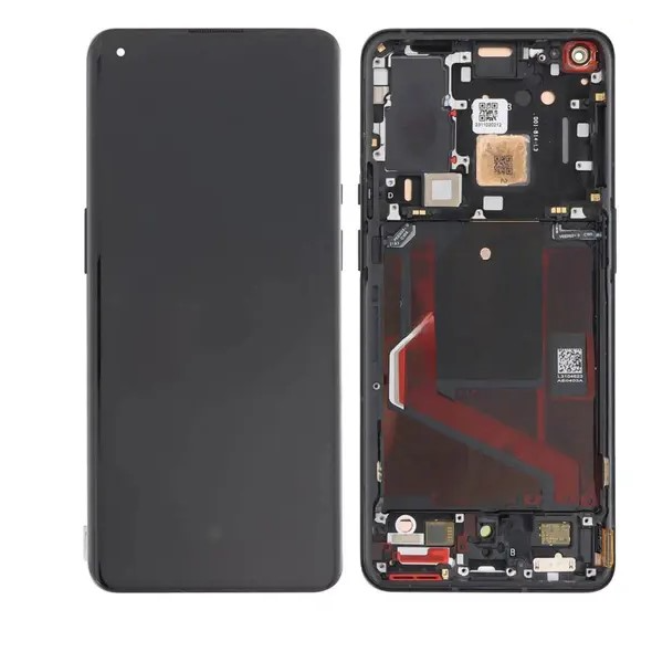 Service-pack complete display with frame for OnePlus 9 Pro; pre-assembled module restores LTPO OLED performance and factory fit.
