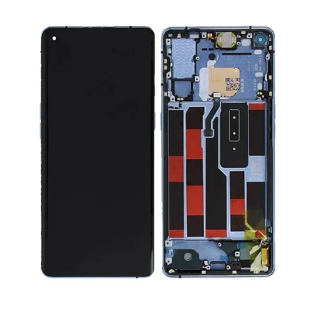 Service-pack complete Super AMOLED display with frame for Reno 4 Pro 5G in Galactic Blue; pre-tested module for direct replacement.