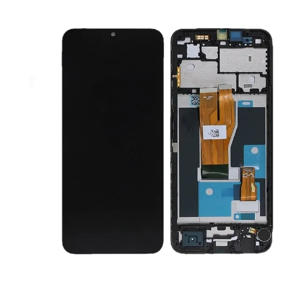 Service‑pack complete display assembly with frame for Realme C33; tested replacement module.