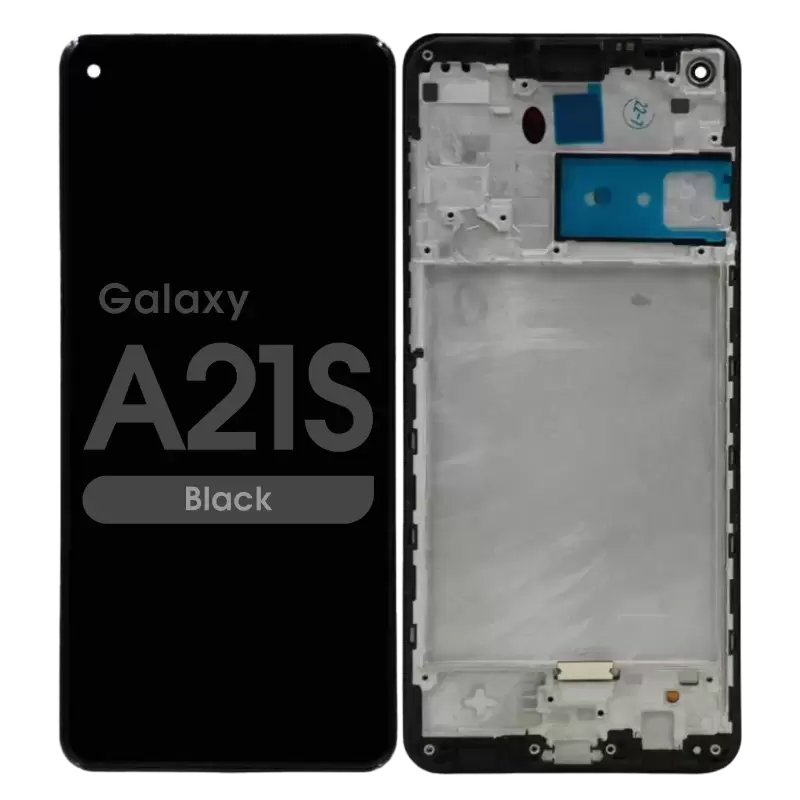 Replacement display and touchscreen with frame for Galaxy A21s A217F; compatible quality.