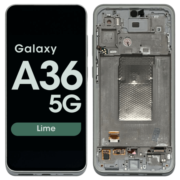 Super AMOLED 6.7" 120Hz 1080x2340 complete display with frame for Galaxy A36 A366B in lime; service pack quality.