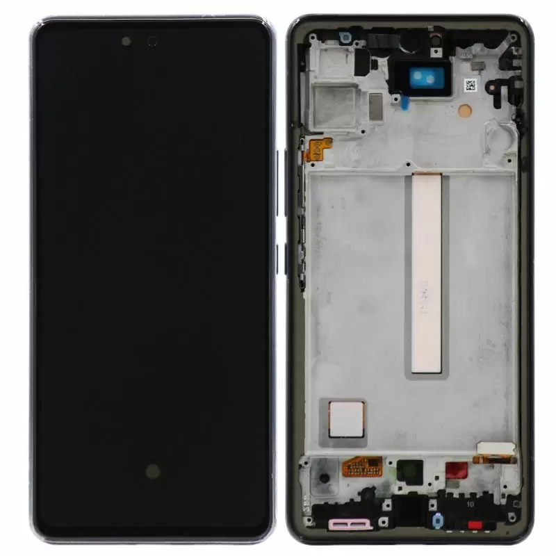 Super AMOLED 6.5" 120Hz 1080x2400 complete display with frame for Galaxy A53 A536B; Gorilla Glass 5; service pack quality.