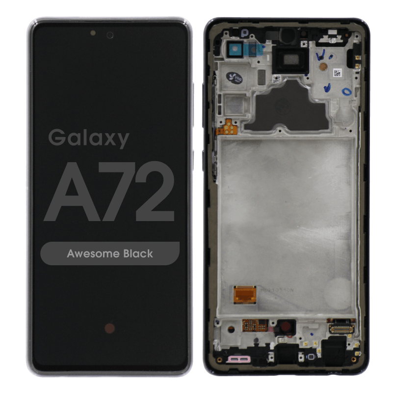 Super AMOLED 6.7" 90Hz 1080x2400 complete display with frame for Galaxy A72 SM‑A725; excludes battery; service pack quality.