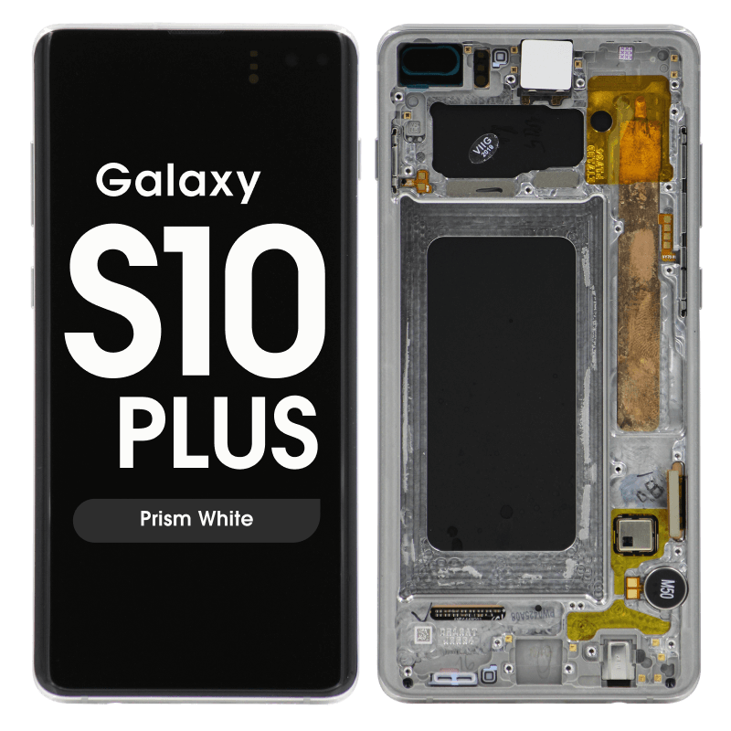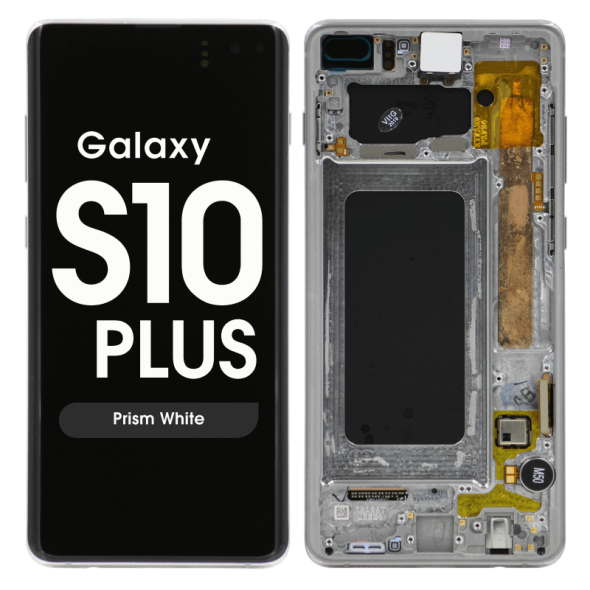 Dynamic AMOLED 6.4" 1440x3040 complete display with frame for Galaxy S10+ SM‑G975F in prism silver; service pack quality.
