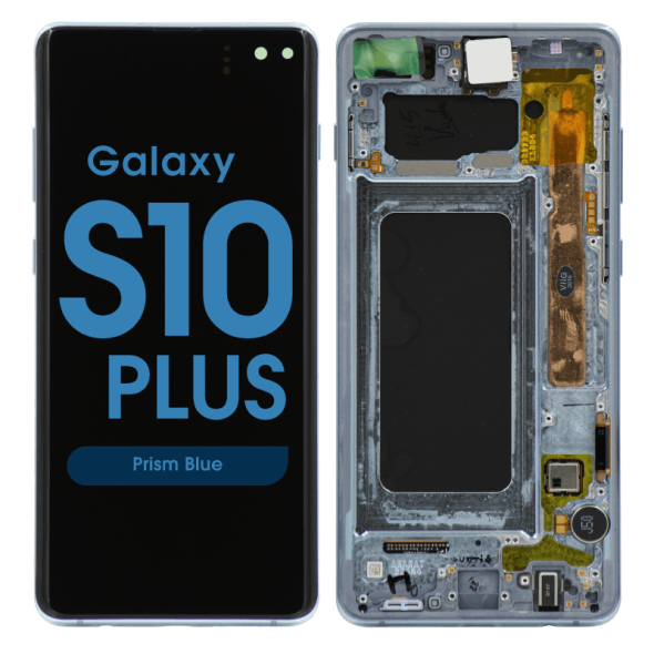 Complete display assembly GH82‑18834C / GH82‑18849C for Galaxy S10+ SM‑G975F in prism blue; service pack quality.