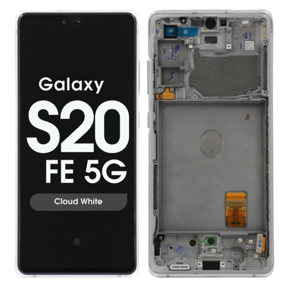 Super AMOLED 6.5" 1080x2400 120Hz complete display with frame for Galaxy S20 FE; cloud white; service pack quality.