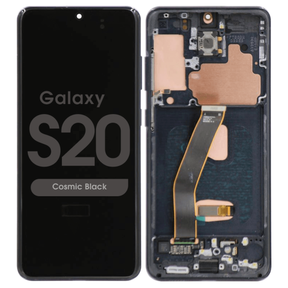 Replacement display and digitizer with frame for Samsung Galaxy S20 (G980F) in Cosmic Grey. Features Soft‑OLED technology for vivid visuals and precise fit, making it ideal for professional repairs.