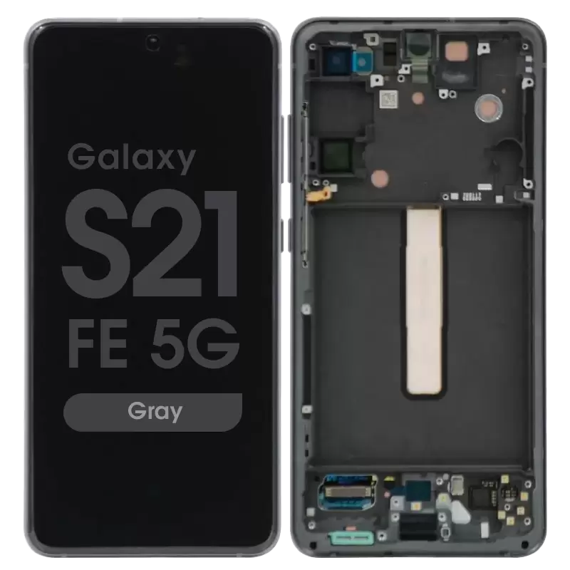 Dynamic AMOLED 2X 6.4" complete display with frame for Galaxy S21 FE SM‑G990B in graphite; service pack quality.