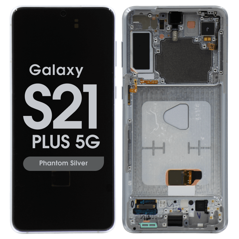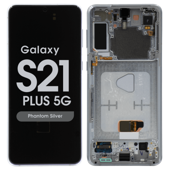 Dynamic AMOLED 2X 6.7" complete display with frame for Galaxy S21 Plus SM‑G996B in phantom silver; service pack quality.