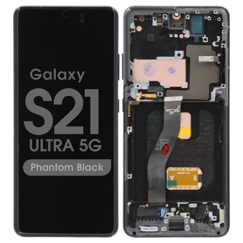 Dynamic AMOLED 2X 6.8" 1440x3200 515 ppi 120Hz complete display with frame for Galaxy S21 Ultra SM‑G998B in black; pulled condition.