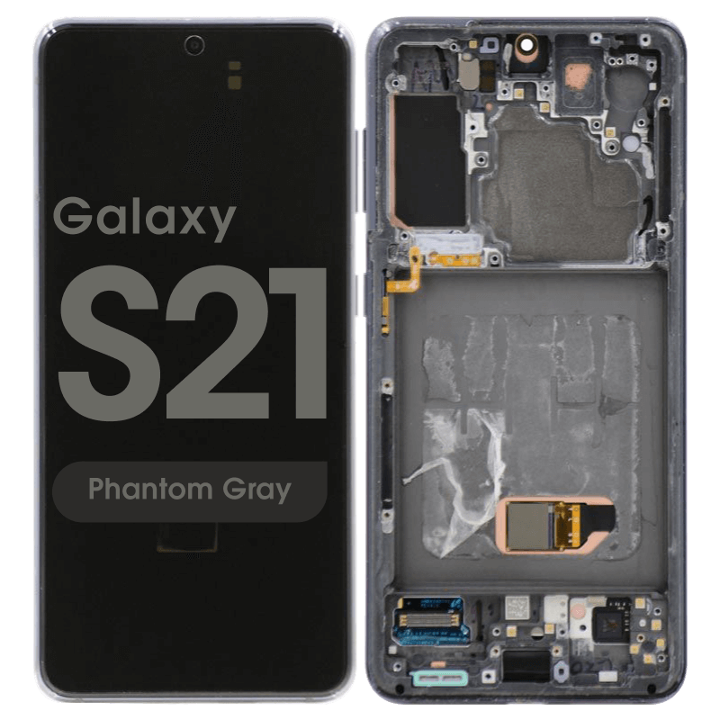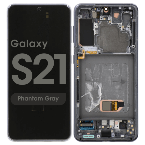 Dynamic AMOLED 2X complete display with frame for Galaxy S21 5G SM‑G991B in phantom gray; pulled condition.