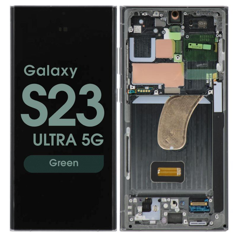 Dynamic AMOLED 2X 6.8" 1440x3088 complete display with frame for Galaxy S23 Ultra SM‑S918B in green; Gorilla Glass Victus 2; service pack quality.