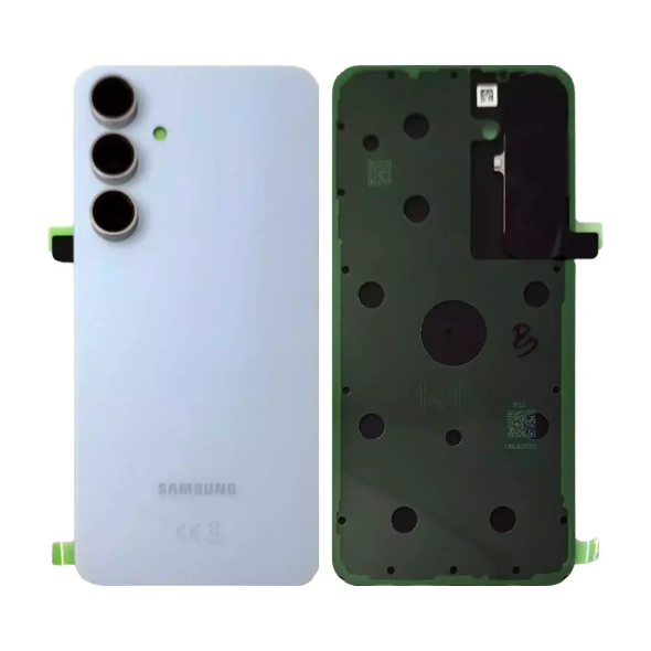 Blue replacement back cover for S24 FE, precise camera cutout and snap‑fit mounting