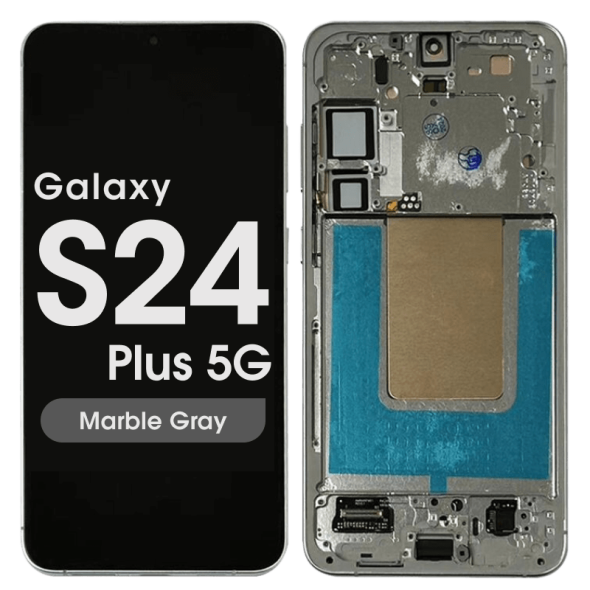 Dynamic LTPO AMOLED 2X 6.7" 1440x3120 pre‑assembled display with frame for Galaxy S24 Plus SM‑S926B in marble grey; service pack pre‑assembled.