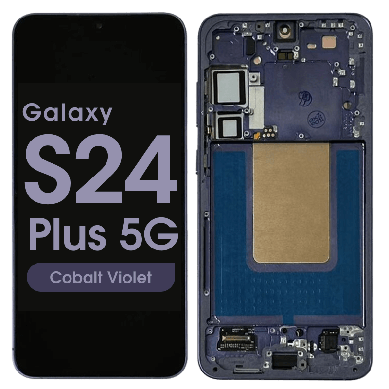 Complete display assembly GH82‑33412C with frame and battery for Galaxy S24 Plus SM‑S926B in cobalt violet; service pack quality.