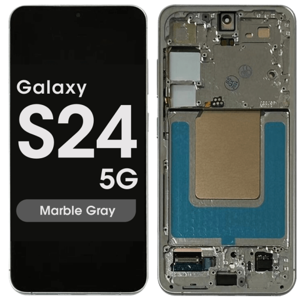 Dynamic AMOLED 6.2" complete display with frame pre‑assembled for Galaxy S24 SM‑S921B in marble grey; service pack quality.